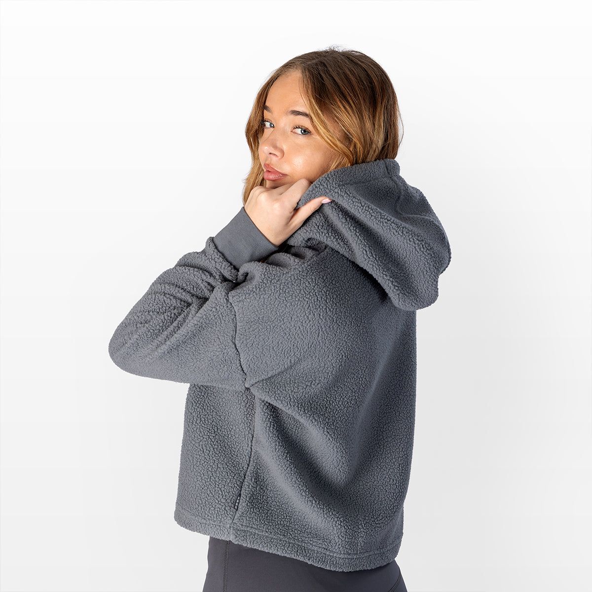 WOMEN'S SHERPA CROPPED PULLOVER HOODIE