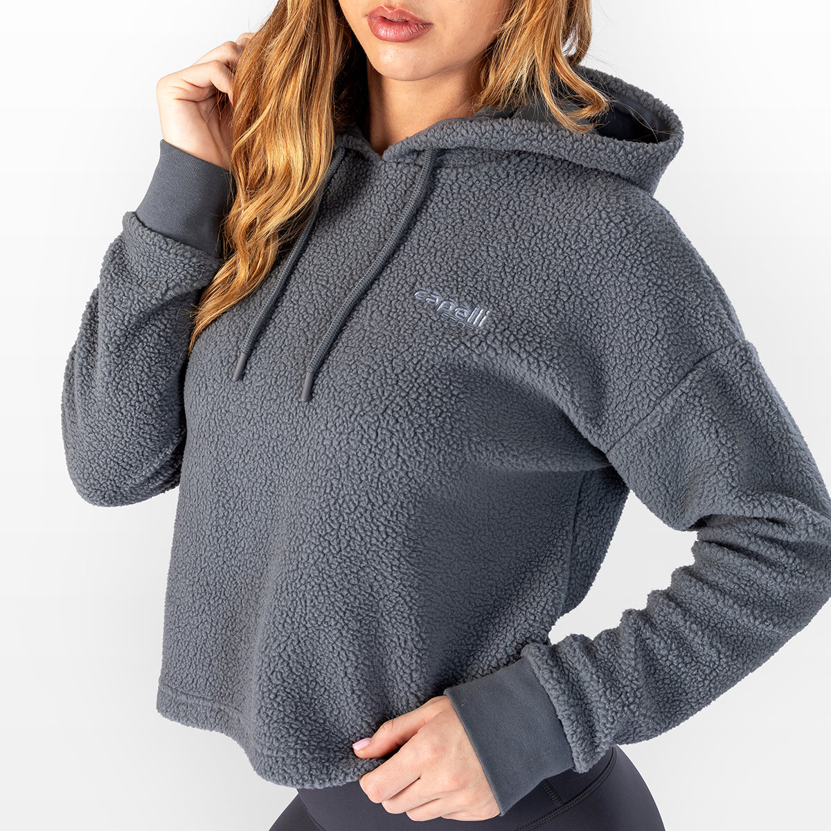 Regular price $60.00Sporty-chic leisurewear that’s designed for both looks and comfort; the Capelli Sport Women’s Sherpa Cropped Pullover Hoodie is a fashion-forward hoodie for any casual setting. Made from soft, yet durable polyester sherpa material, these women’s cropped sweatshirts have ribbed cuffs and a jersey-lined drawstring hood. For added style, they have a chest embroidered Capelli Sport logo, and a side 4-Cube woven label. Hang with friends, run errands on the weekend, or chill around the house in a cozy cropped hoodie.